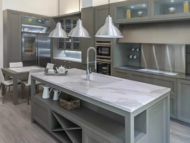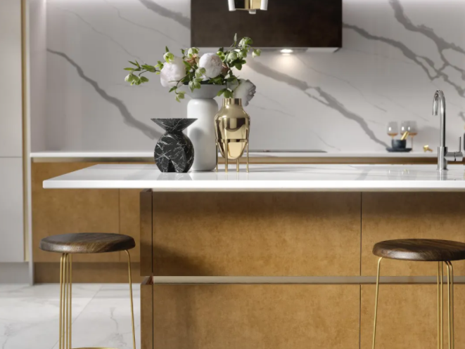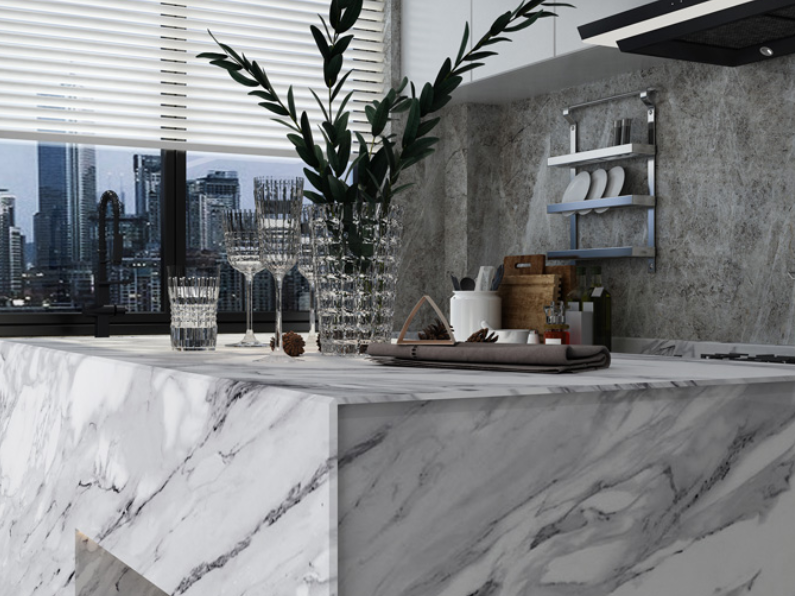 巖板是由純天然礦物組成且沒有樹脂粘合劑的人造石材,這也就意味著材料可分解和重復使用,因此巖板的環(huán)保性優(yōu)于石英石,且耐高溫不易發(fā)生板材破裂。